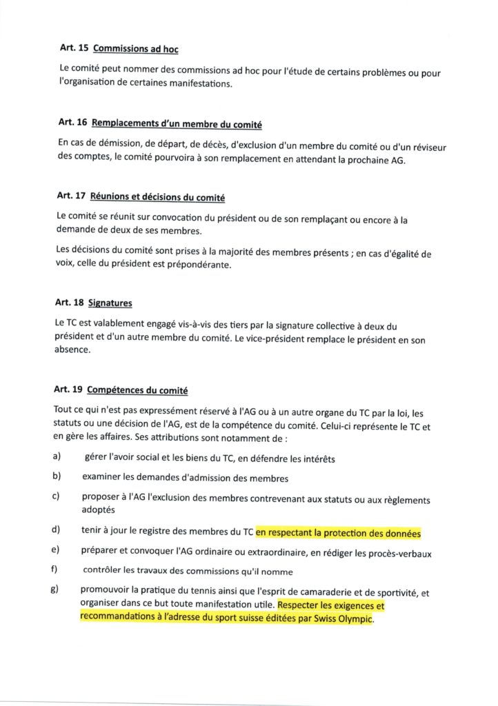 STATUTS PROVISOIRES du Tennis Club de St-Léonard